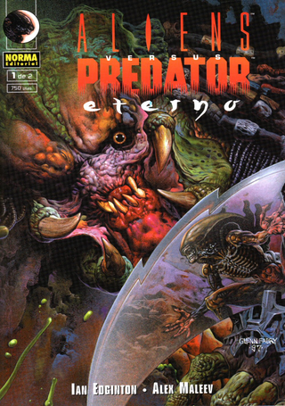 *Aliens vs. Predator: Eterno* (originalmente publicada como *Aliens vs. Predator: Eternal*) es una de las miniseries más sofisticadas y visualmente distintivas dentro del vasto catálogo que Dark Horse Comics dedicó al cruce de estas dos icónicas franquicias cinematográficas. Publicada a finales de los años 90, esta obra cuenta con el guion de Ian Edginton y el arte de un entonces emergente Alex Maleev, cuya estética sombría y texturizada redefine la atmósfera habitual de estos encuentros.