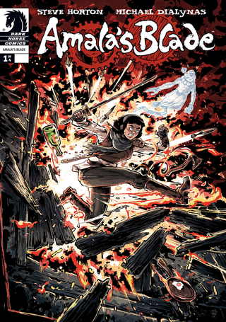 *Amala’s Blade*, creada por el guionista Steve Horton y el dibujante Michael Dialynas, es una obra que se sitúa en la intersección del género *steampunk*, la fantasía épica y el *cyberpunk*. Publicada originalmente por Dark Horse Comics, la historia nos traslada al mundo de Naamaron, un planeta que ha sido devastado y dividido por una guerra civil ideológica y tecnológica que parece no tener fin. La narrativa se aleja de los tropos clásicos del bien contra el mal para explorar las zonas grises de un conflicto donde el progreso y la tradición han mutado en extremismos violentos.