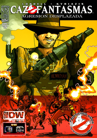 Cazafantasmas: Agresión desplazada (*Ghostbusters: Displaced Aggression*) es una miniserie de cuatro números publicada originalmente por IDW Publishing en 2009. Escrita por Scott Lobdell e ilustrada por Ilias Kyriazis, esta obra representa uno de los primeros esfuerzos editoriales por expandir el universo de la franquicia tras los eventos de las películas originales, explorando una premisa de ciencia ficción pura: el desplazamiento temporal.