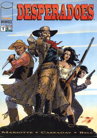 Desperadoes, creada por el guionista Jeff Mariotte y lanzada originalmente a finales de los años 90, es una de las obras más representativas y sólidas del subgénero conocido como *Weird West*. Esta vertiente narrativa combina los tropos clásicos del western —el desierto implacable, la ley del revólver y la frontera indómita— con elementos de terror sobrenatural, fantasía oscura y suspense procedimental. La serie se aleja de la visión romántica del Viejo Oeste para sumergir al lector en una atmósfera opresiva donde el peligro no solo proviene de forajidos humanos, sino de entidades que desafían la lógica racional.