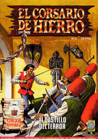 Hablar de *El Corsario de Hierro* es invocar la edad de oro del tebeo de aventuras español. Creado en 1970 para la revista *Mortadelo* por el legendario guionista Víctor Mora y el magistral dibujante Ambrós —la misma dupla creativa que dio vida a *El Capitán Trueno*—, este personaje representa la evolución y madurez del género de "capa y espada" en España. La denominada Serie Roja, publicada por la Editorial Bruguera, se convirtió en el formato más icónico para disfrutar de estas peripecias, recopilando las andanzas del héroe en cuadernillos que hoy son piezas de culto para coleccionistas y amantes de la narrativa gráfica.
