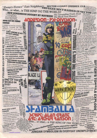 El guion de Alan Grant destaca por su capacidad para equilibrar la narrativa procedimental con una profundidad filosófica notable. Grant utiliza a Anderson para explorar conceptos como el inconsciente colectivo, el fin de la era materialista y la posibilidad de una evolución humana que trascienda la violencia. A diferencia de las historias de su contraparte, el Juez Dredd, donde la solución suele ser la aplicación de la fuerza, en *Shamballa* el conflicto se resuelve en el plano de las ideas y la voluntad psíquica.