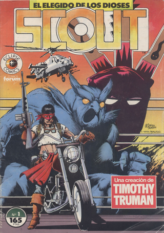 *Scout*, creada, escrita y dibujada por Timothy Truman, representa uno de los pilares más robustos y singulares del cómic independiente estadounidense de la década de 1980. Publicada originalmente por la editorial Eclipse Comics, la serie se aleja de los tropos convencionales de los superhéroes para sumergirse en una narrativa cruda que fusiona el género post-apocalíptico, el thriller político y el western contemporáneo, todo bajo un prisma de misticismo apache.