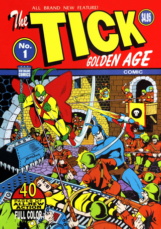 *The Tick – Golden Age*, publicado por New England Comics (NEC), representa una pieza fundamental para los coleccionistas y entusiastas del personaje creado por Ben Edlund. Este título no debe confundirse con una simple recopilación de historias antiguas; es, en esencia, una exploración estilística y narrativa que busca capturar la pureza del "Gran Azul" mientras rinde homenaje y, simultáneamente, parodia los tropos de la era dorada y de plata del cómic estadounidense. La obra se sitúa en un punto donde la sátira de superhéroes alcanza su madurez, manteniendo el tono surrealista que convirtió a The Tick en un fenómeno de culto.
