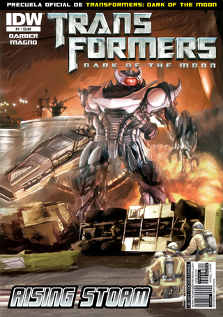 Transformers: Rising Storm es una miniserie de cuatro números publicada por IDW Publishing en 2011, que funge como la precuela oficial y directa de la película *Transformers: Dark of the Moon*. Escrita por John Barber y dibujada por Carlos Magno, esta obra es fundamental para comprender la transición narrativa entre la segunda y la tercera entrega cinematográfica dirigida por Michael Bay, llenando los vacíos argumentales que quedaron tras la derrota de The Fallen en Egipto.